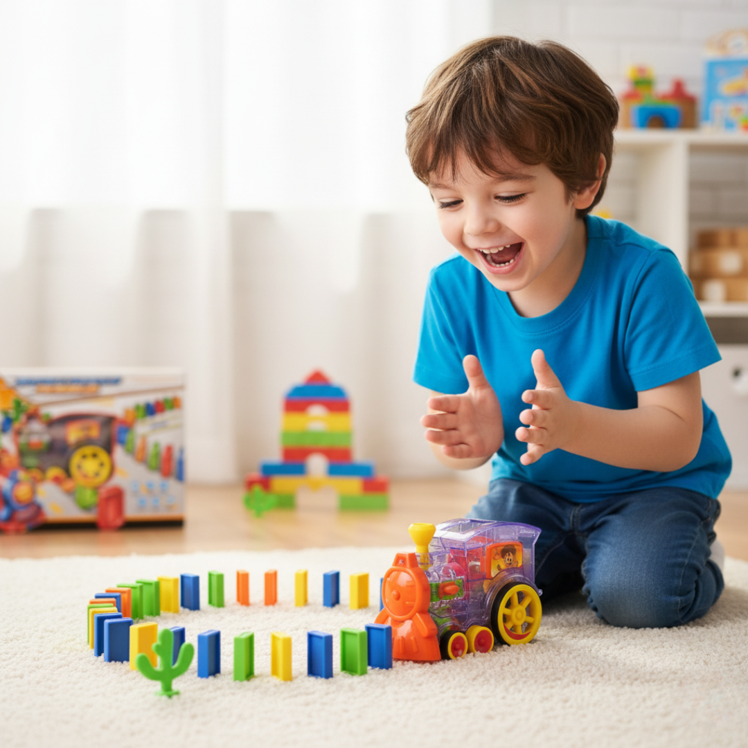 DominoTrain™ es ese juguete que despierta sonrisas nada más abrir la caja.