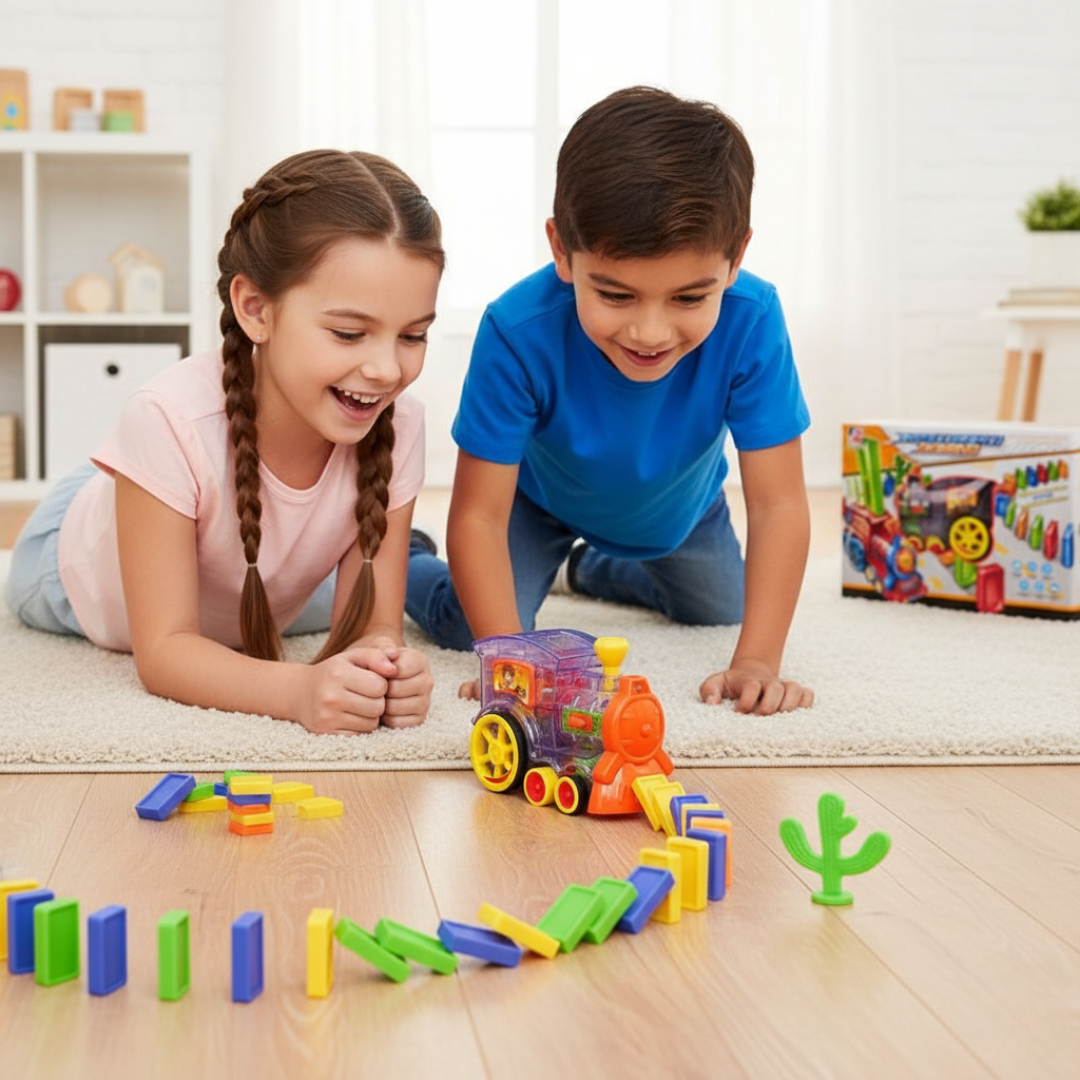 DominoTrain™ transforma el clásico dominó en pura magia mecánica.