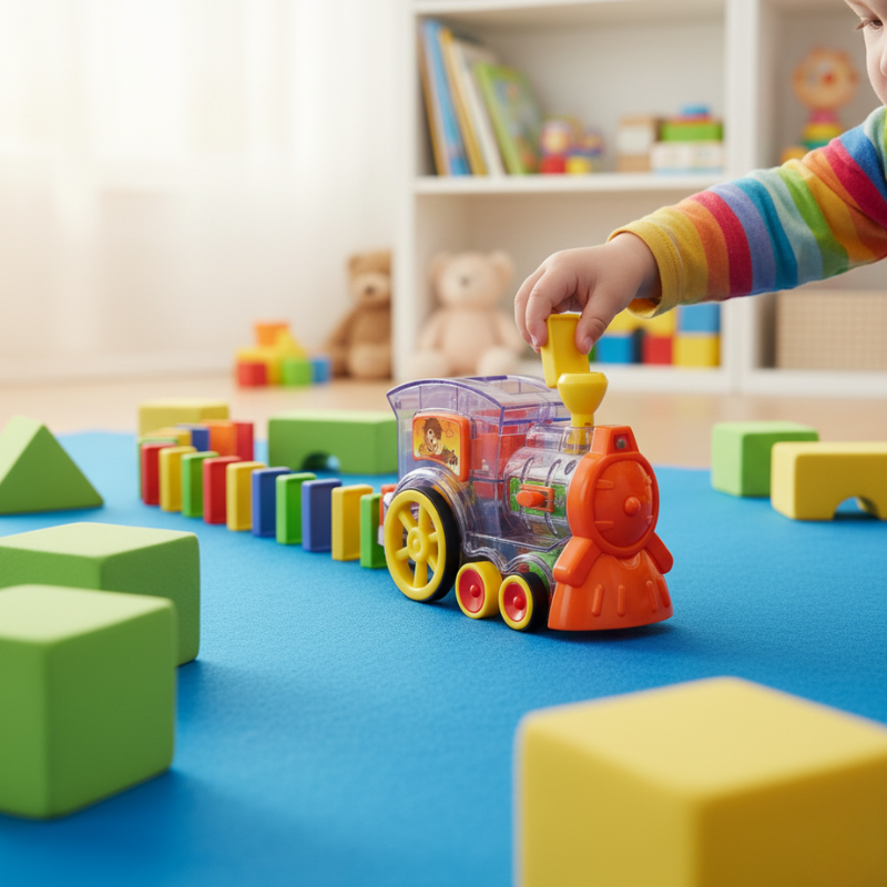 Mientras el tren avanza y las fichas se alinean, los peques comprenden la relación entre causa y efecto, entrenan la coordinación ojo-mano y desarrollan paciencia y concentración.