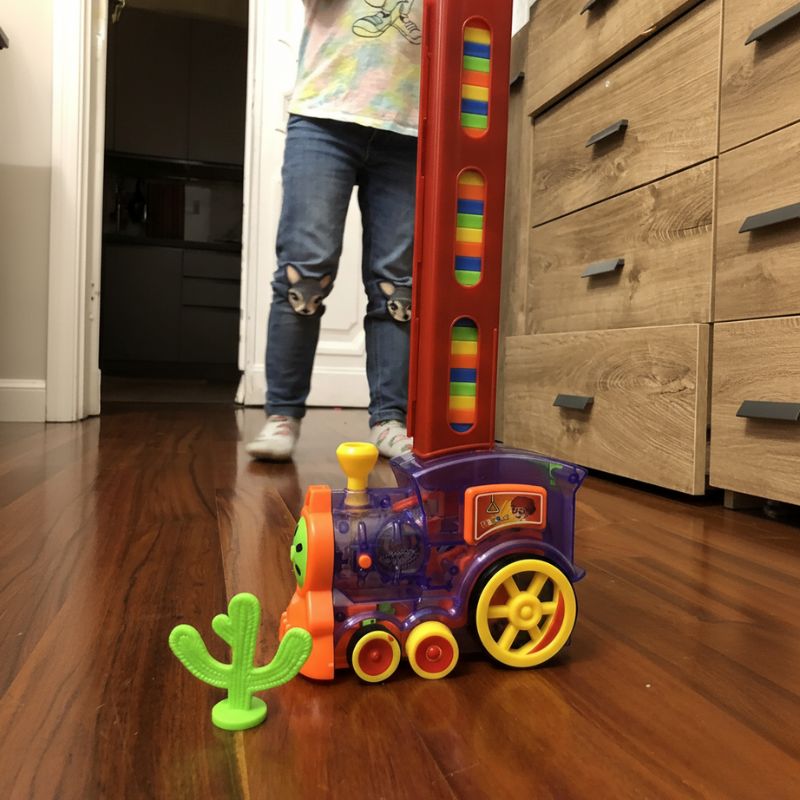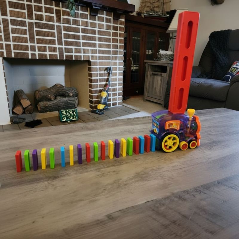 A mis hijos les encanta ver cómo el tren coloca los dominós. Es super chulo. Lo usamos casi cada tarde, y sigue funcionando perfecto