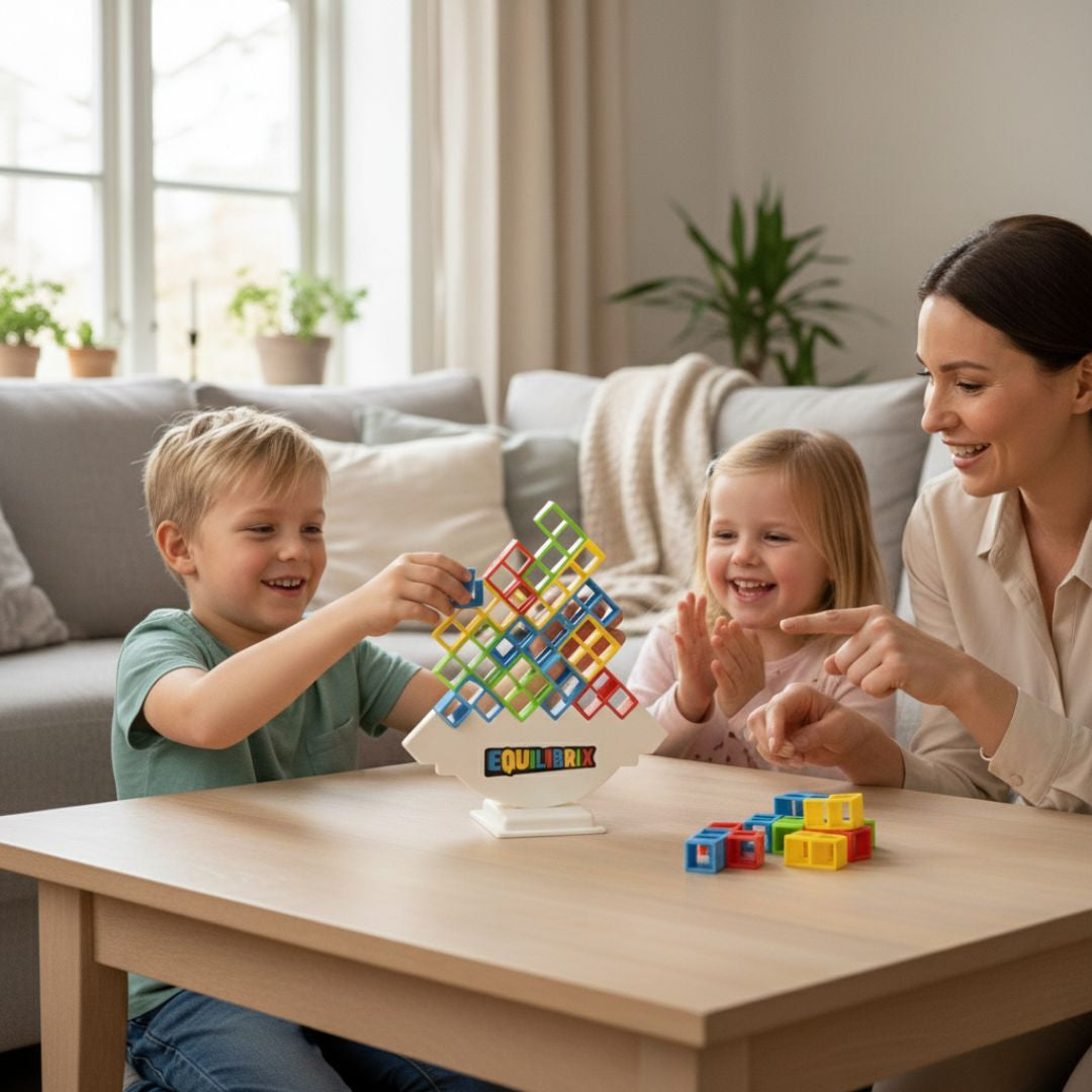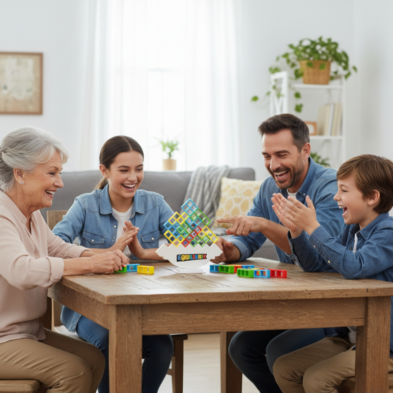 ¿Quién dijo que los juegos de mesa eran solo para niños? Equilibrix™ saca el lado competitivo de todos, con partidas llenas de risas, tensión y estrategias para mantener la torre en pie.